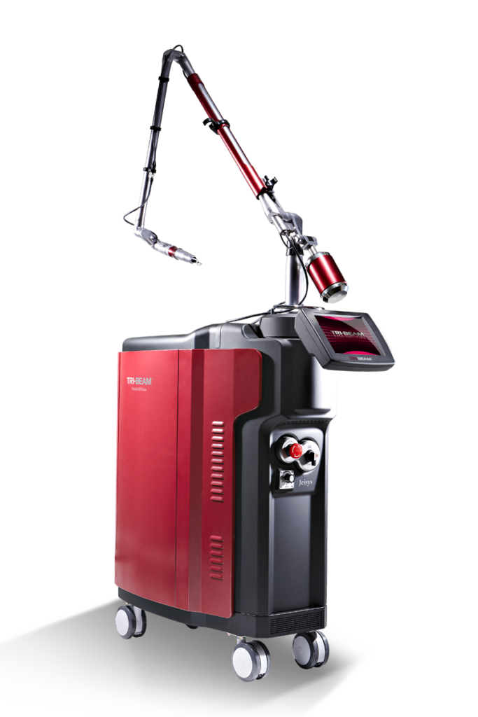 - トライビームは QスイッチYAGレーザーの応用機器で、2波長(532nm と 1064nm)を使い分けて照射できるタイプ。