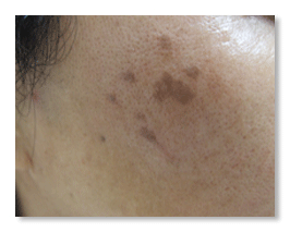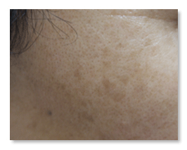 比較的薄い褐色色素斑が顔面の主として鼻、頬にかけて小児期から出現するのが典型的で、やはり紫外線により増悪します。多くは優性遺伝によるものです。