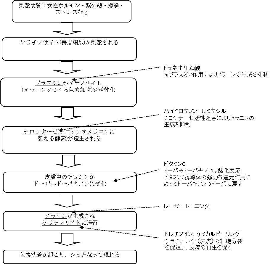 - 黒色化したメラニンに直接働き、淡色化する漂白作用もあります。